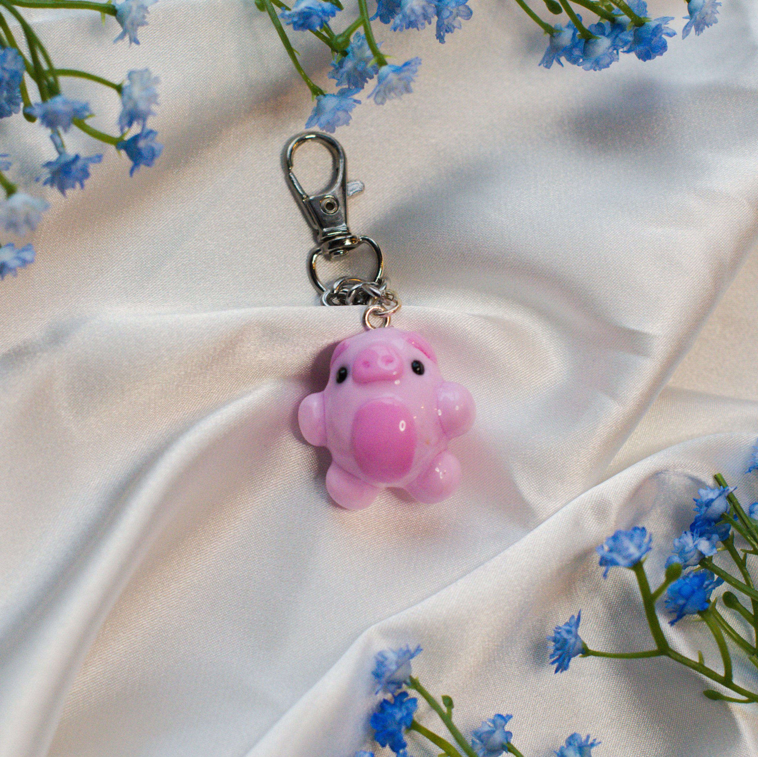 Super cute polymer clay pig keychain perfect for decorating your keys or bag! Glazed with UV resin to provide extra protection for general knocks and bumps and supplied with a strong lanyard clasp as shown in the photos.